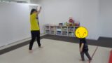 今日の動物さんは後ろ歩きになってもらいました。クマ歩きは簡単に行っていましたが、カエル跳びは手から動かすか、脚から動すか考えながら取り組んでいる様子でした。