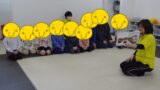 音楽が止まったらフープ中に入りバランスポーズを行いました。飛行機ポーズはみんなで大成功!ピシッと決まりました。
