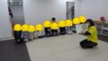 床の線の上でジャンプしてしゃがむの繰り返し。反応がよく、勢いよくできました。