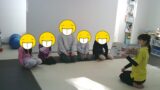 黄色、赤、青のフープに入りました。バナナと同じ色、トマトと同じ色、という聞き方もしていきました。「なすは?」「うーん、青に近いね」と考えて動いていました。