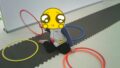 2枚のマットをつなげて走り抜けたり、幅跳びでは、マットとマットの間を広くしていき、
