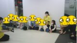 音楽が止まったらフープの中に入り、リーダーとなる職員がいる方を見て立ちました。