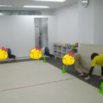 ケンパ・川跳び・カラーコーンタッチクマでは、大きな声で色を言いながら