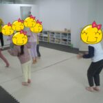 音楽が止まったらみんなで中央に集まり、仲良く手をつないで輪になりました。
