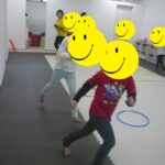 フープを隣り同士に置いて、仲良いお友だちもいました。