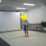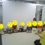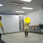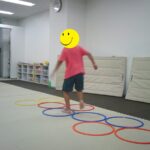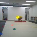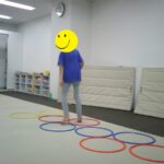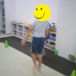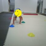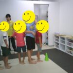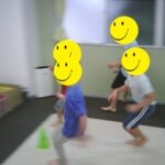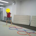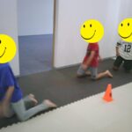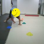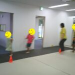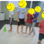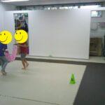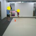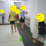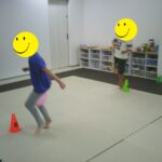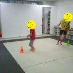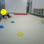 音楽が止まったら、指定された数字のコーンの前に立ちました。