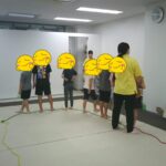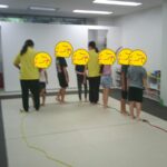 「色」と「向く方向」をしっかり聞いて縄の上に立ちました。