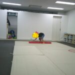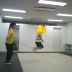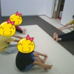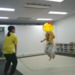 縄の輪っかに「立つ」「座る」「寝る」などの指示をよく聞いて
