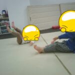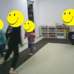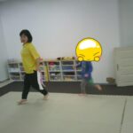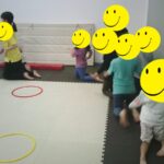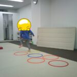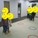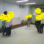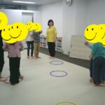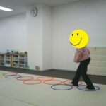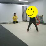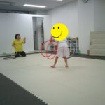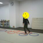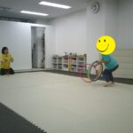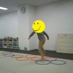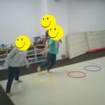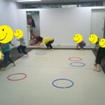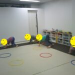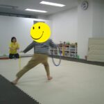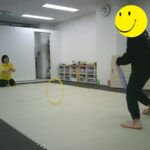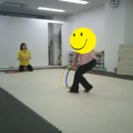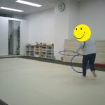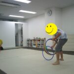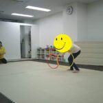 音楽が止まったら瞬時にフープの中に入りました。