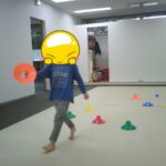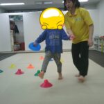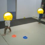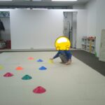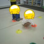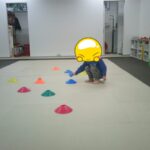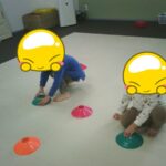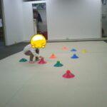 コーンの上に同じ色のボールを乗せていきました。