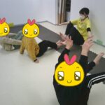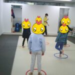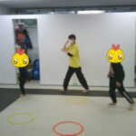 フープにボールを入れる時には「ただいま」と言いながら行いました。