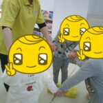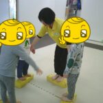 お友だちの顔が見えるように平均台を置いて、その上に立ちました。