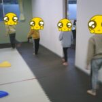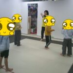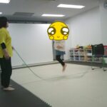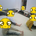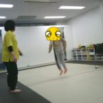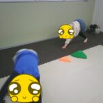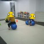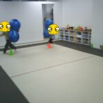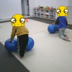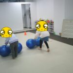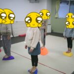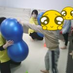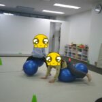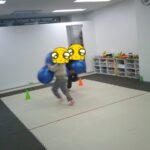 最後はボールに跨り、ジャンプしながら鬼ごっこをしました。