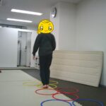 ゴム跳びを跳んだり、くぐったりしながら、たくさん走ることができました。