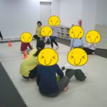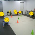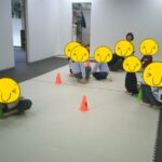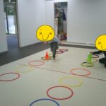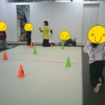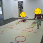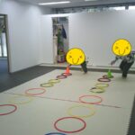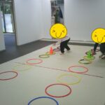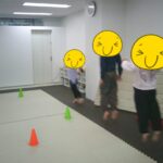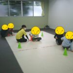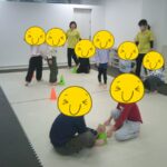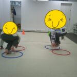 指定された色のコーンにお友だちと仲良くタッチしました。