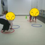 2つのフープを使ってその中だけを移動して前進もしました。手際良くフープを