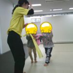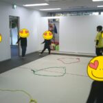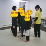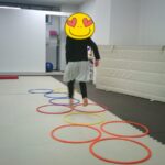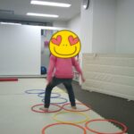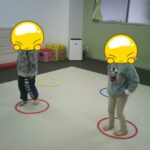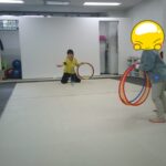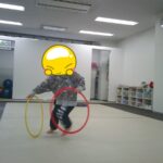 指定された色のフープに入りました。ひとりひとつありましたが、