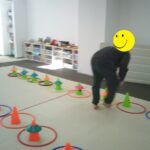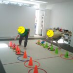 ナンバーコーンの上にカラーコーンを傘のように乗せるゲームも行いました。