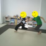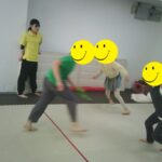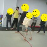 一本橋カニ歩きは股関節をしっかり開いて進むことを伝えました。