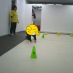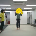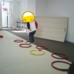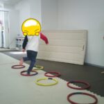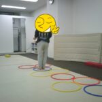 フープからフープへジャンプしました。距離を少しずつ広げてジャンプ力を