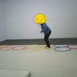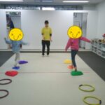フープの中に入って、お友だちと向かい合って立ちました!