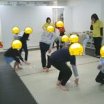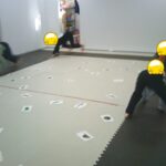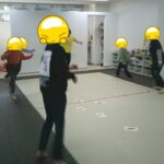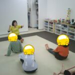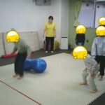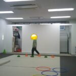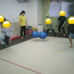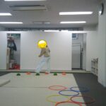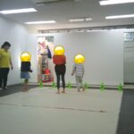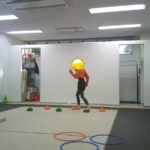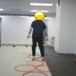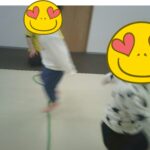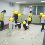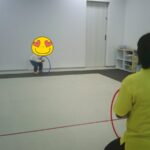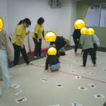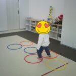 指定された色のフープに入ったり、お友だちも色を言う係を