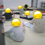 野菜、果物、乗り物、動物などのカードを取っていき、自分の場所に重ねていきました。