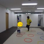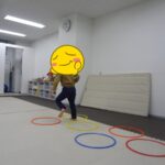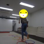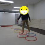 フープの中だけを移動して鬼ごっこをしました。