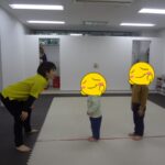 その後、縄をくぐるゲームを行いました。体を小さくして低いところも縄に触れずに