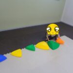 赤か黄色の平均台を選んで、その上に立ちました。