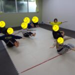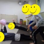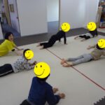 寝ているお友だちからボールを受け取る、というリレーも行い