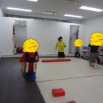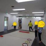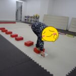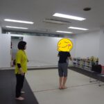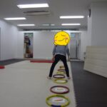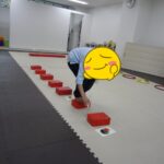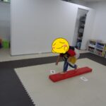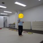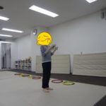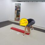 フープの中に入る、平均台の上に足を乗せる、平均台に乗る、カードを床に置く、