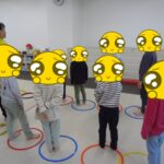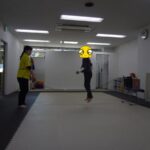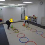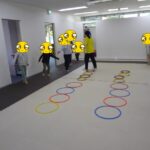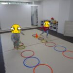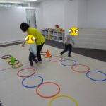 小さいフープ、大きいフープ、その都度の指示を聞いて入りました。