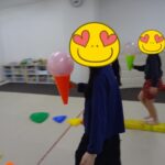 ナンバーコーンを逆さに持ち、その上にボールを乗せて歩きました。
