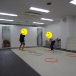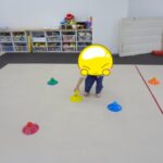 数字あそびではナンバーコーンをタッチしたり、お友だちが先生役になって