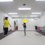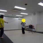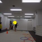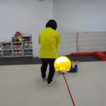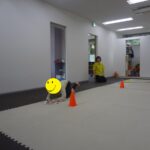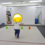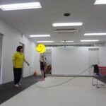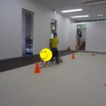 綱渡りは、途中のカラーコーンをタッチしながら進みました。