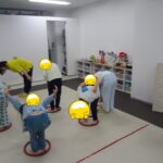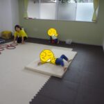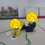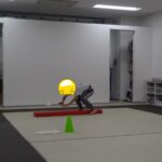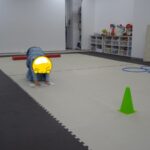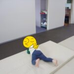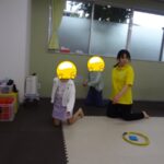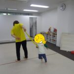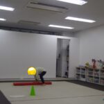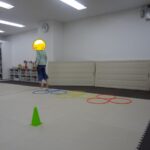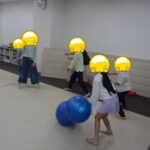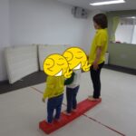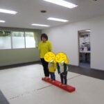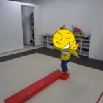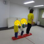 「電車だよ」と言うと嬉しそうに平均台に乗っていました。