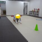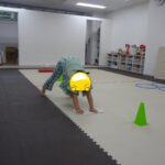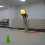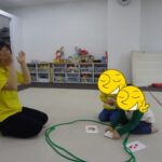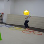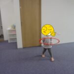 転がってくるフープを取るのが上手になりました。
