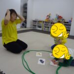 お手玉を体の色々な部分に乗せました。