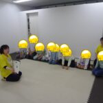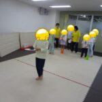 お手玉を今度はうちわに乗せて運び、うしろのお友だちにパスしていきました。